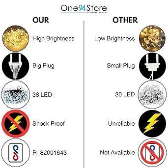One94Store 36 LED Flower String Lights, 10 Meter, Warm White | Made in India, Silicone Flower, Rubber, Corded Electric Decorative Lights for Diwali, Wedding, Party, Indoor & Outdoor Use .